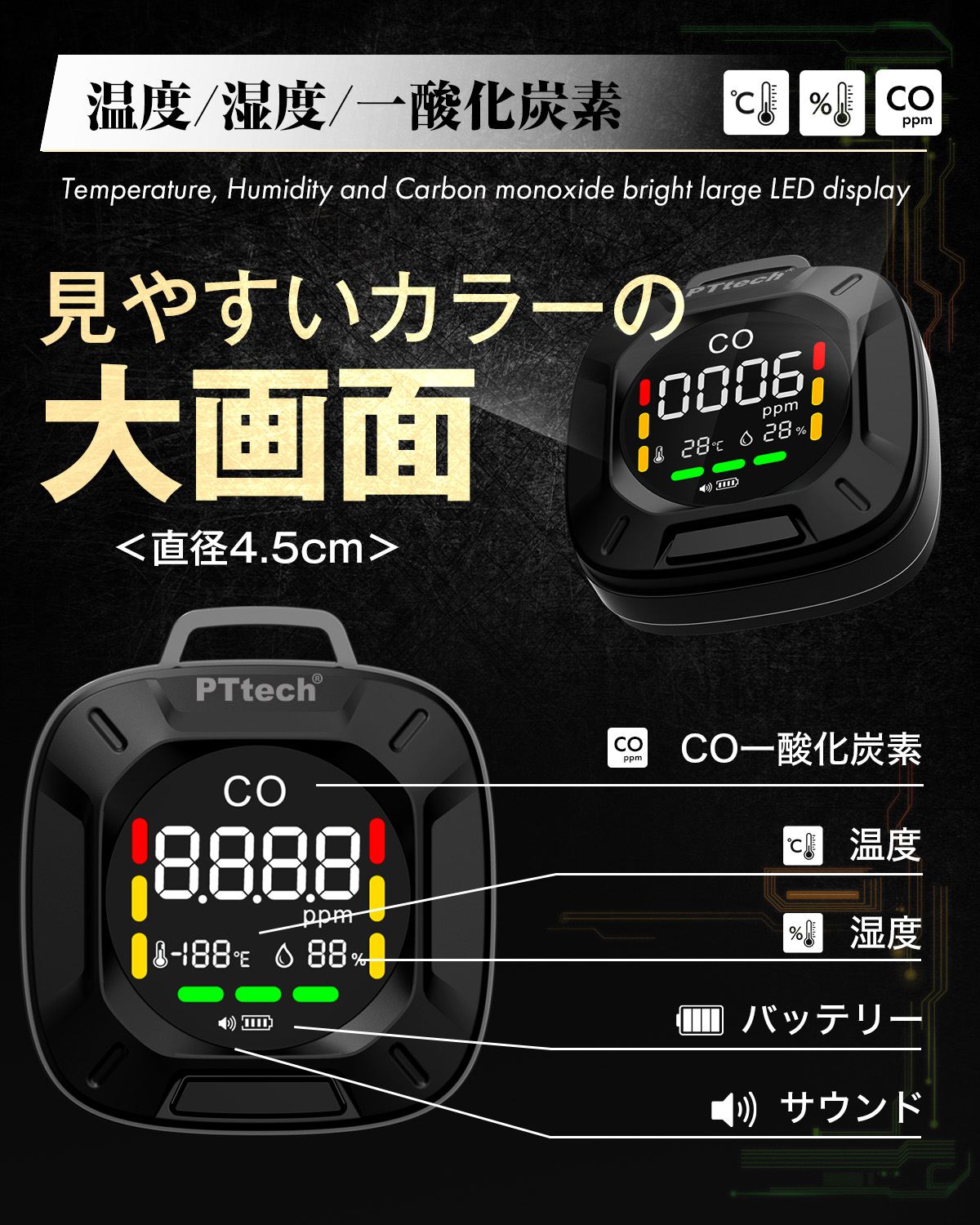 【PTtech】一酸化炭素チェッカー PT005